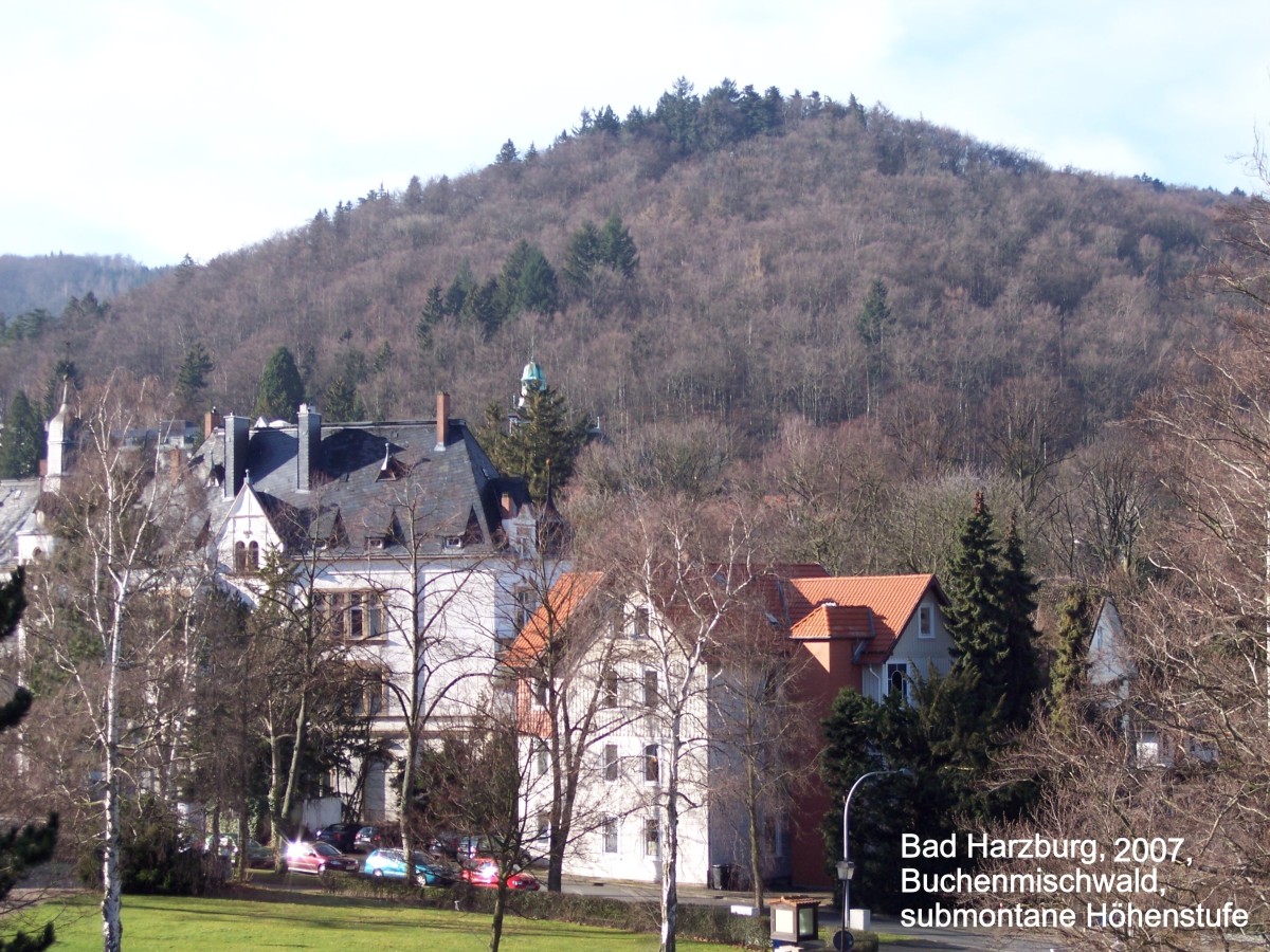 Ein seit 2006 bestehender, länderübergreifender Nationalpark und eine Vielzahl zum Teil schon älterer Schutzgebiete, wie bspw. das sagenumwobene Bodetal zwischen Treseburg und Thale mit seinen touristischen Attraktionen Roßtrappe und Hexentanzplatz, Naturschutzgebiet seit 1937, üben einen großen Reiz auf Naturliebhaber aus und ziehen alljährlich neben vielen Touristen auch eine große Zahl von Studierenden verschiedenster Universitäten aus dem In- und Ausland in ihren Bann. Seit jeher gehören deshalb biologische und hier besonders geobotanisch - ökologische Exkursionen zum festen Ausbildungsprogramm. Dabei versucht man nicht selten neben der fast obligatorischen Hochharzexkursion mit Besuch des Brockens und Brockengartens weitere pflanzengeographisch bedeutsame Schutzgebiete im nördlichen oder südlichen Harzvorland in das Exkursionsprogramm aufzunehmen. Eine besondere Bereicherung erfährt das Gebiet durch mehrere Weltkulturerbestätten in Goslar und Quedlinburg. In Goslar stehen seit 1992 die Altstadt und die berühmte Kaiserpfalz unter Schutz der UNESCO; 2010 kamen das Bergwerk Rammelsberg und die Oberharzer Wasserwirtschaft hinzu. In Quedlinburg sind die Stiftskirche sowie das dortige Schloß und die Altstadt geschützt. Bei allem sei nicht vergessen , daß unsere großen Dichter Johann Wolfgang von Goethe und Heinrich Heine den Harz bereisten, wovon mehrere Wanderwege künden. Die Magie der Landschaft ist in ihrem schriftstellerischen Werk verewigt. Eine einzigartige, überwältigende Natur und ein bedeutendes Kulturgut erwarten uns. Als nördlichstes Mittelgebirge Zentraleuropas nimmt der Harz im Vergleich mit anderen nahe gelegenen Gebirgen wie dem Thüringer Wald und dem Erzgebirge eine Sonderstellung ein. Der Brocken ist schon aus großer Ferne an seinem kahlen, waldfreien Gipfel erkennbar und zieht Jahr für Jahr bis zu zwei Millionen Besucher magisch in seinen Bann. Obwohl nur 1141 m hoch, unterscheidet er sich deutlich von den höchsten Gipfeln der benachbarten Gebirge, die alle, und das gilt auch für den höheren Fichtelberg bei Oberwiesenthal, bis in die höchste Region bewaldet sind. Eine natürliche Waldgrenze wie am Brocken kennt man dort nicht. Der Harz wird durch extreme Klimabedingungen geprägt. Niedrige Luft- und Bodentemperaturen, dazu starke, häufig stürmische Winde, die "ungebremst" aus westlicher Richtung wehen, im Jahr 1984 wurde die bisherige Höchstgeschwindigkeit von 263 km/h gemessen, bewirken, daß schon in geringer Höhe zwischen 1100 und 1130 m eine natürliche Waldgrenze erreicht wird. Die in dieser Höhe vorkommenden Fichtenwälder sind natürlichen Ursprungs und charakterisieren in ihrer pflanzensoziologisch-ökologischen Vielfalt die hier gut ausgebildete obere Bergstufe oder altimontane Höhenstufe (begriffliche Fassung nach SEDLAG, U., WEINERT, E., 1987). Ihre Vorposten mit niedrigen, vom Wind geformten Bäumen (Picea abies) bilden in einer subalpinen Übergangszone die Baumgrenze und leiten zu den baumlosen Matten des Brockenplateaus über. Ein ähnliches Vegetationsbild kennt man auch von bestimmten Gebieten der Nordalpen, wo der altimontane Fichtenwald in eine alpine Mattenvegetaton übergeht und vom Wind gezeichnete, vereinzelt vorkommende Fichten (Picea abies) ebenfalls die subalpine Kampfzone des Waldes charakterisieren. Die dortige Waldgrenze liegt allerdings wesentlich höher zwischen 1700 und 1900 m ü. NN. Auch im nördlichen Skandinavien sind solche Vegetationszonierungen beim Übergang von borealen Wäldern zur baumlosen Tundra allgegenwärtig. Die hier anzutreffende zonale Vegetation umgibt "gürtelartig"die nördliche Halbkugel. Es herrschen vergleichsweise ähnliche klimatische Bedingungen wie in den zentraleuropäischen Gebirgen, ohne dabei zu übersehen, daß erhebliche Unterschiede im Strahlungshaushalt, in der Tageslänge, in den Tagesschwankungen der Temperatur, in der Niederschlagsmenge und anderen ökologischen Faktoren bestehen. Dennoch läßt sich sagen, daß die zirkumterrestrisch verlaufenden Vegetationszonen ihr Pendant in den Höhenstufen der Gebirge und umgekehrt finden. In beiden Fällen bestimmen die kürzere Vegetationszeit mit abnehmenden Temperaturen die zonale bzw. vertikale Vegetationsfolge. In mitteleuropäischen Gebirgen, so auch im Harz, trifft man auf Arten, die in ihrem Verbreitungsbild sehr eindrucksvoll das soeben geschilderte Phänomen bekräftigen. Sie besitzen ein disjunktes Areal und kommen sowohl in der borealen Zone als auch in der montanen Höhenstufe der Gebirge vor und gelten deshalb als boreo-montan verbreitet. Als Beispiel hierfür sei auf das entsprechende Areal der Gemeinen Fichte (Picea abies) verwiesen, aber auch das Vorkommen des Raufußkauzes (Aegolius funereus) im Nationalpark Harz sei hier genannt. Diese seltene Art besitzt ebenso ein boreo-montanes Areal. Disjunkte Areale kennt man natürlich auch von Arten mit arkto-alpiner Verbreitung. Das Alpen-Habichtskraut (Hiercium alpinum) oder der Alpen-Flachbärlapp (Diphasiastrum alpinum) wären hier zu nennen, die auch auf dem Brocken vorkommen. Spitzbergen als Beispiel für eine arktische Region ist mit seinen vielen Gletschern ganz und gar arktisch-alpin bis nival geprägt. Dieses beeindruckende Bild läßt sich sehr gut bei einer Fahrt durch die Fjorde, u.a. am berühmtem Nordenskjöld-Gletscher oder am Tunabreen-Gletscher, beobachten. Derartige Extrem-Standorte finden sich in Mitteleuropa nur in den höchsten Gipfelbereichen der Alpen. Nach diesem eher allgemeinen geobotanischen Exkurs wollen wir uns wieder dem Harz zuwenden. Er lädt dazu ein, die soeben geschilderten ökologisch-arealkundlichen Gegebenheiten ansatzweise und in vergleichsweise kurzer Zeit zu studieren. Aus der norddeutschen Tiefebene kommend, bietet es sich an, zunächst in den Bördelandschaften die planare Region (planare Höhenstufe), d. h. eine im wesentlichen agrarisch geprägte Region, näher zu betrachten, um dann in die Hügellandschaft (colline Hö